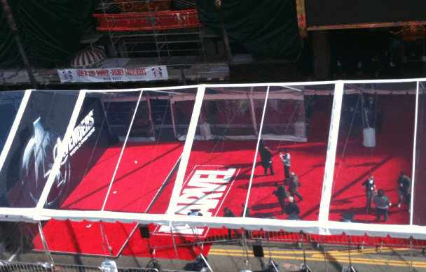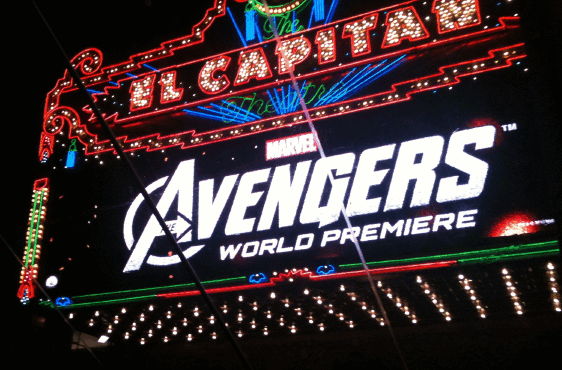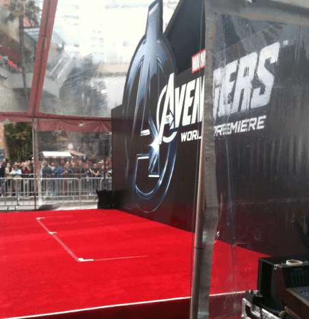 The Avengers premiere was over the top. It was nothing like any movie or product launch that I have witnessed before. Hollywood Boulevard was closed in front of the El Capitan Theatre. The red carpet was rolled out, but covered by a large tent due to a chance of rain.